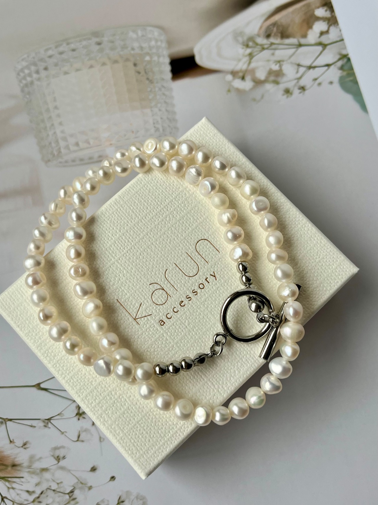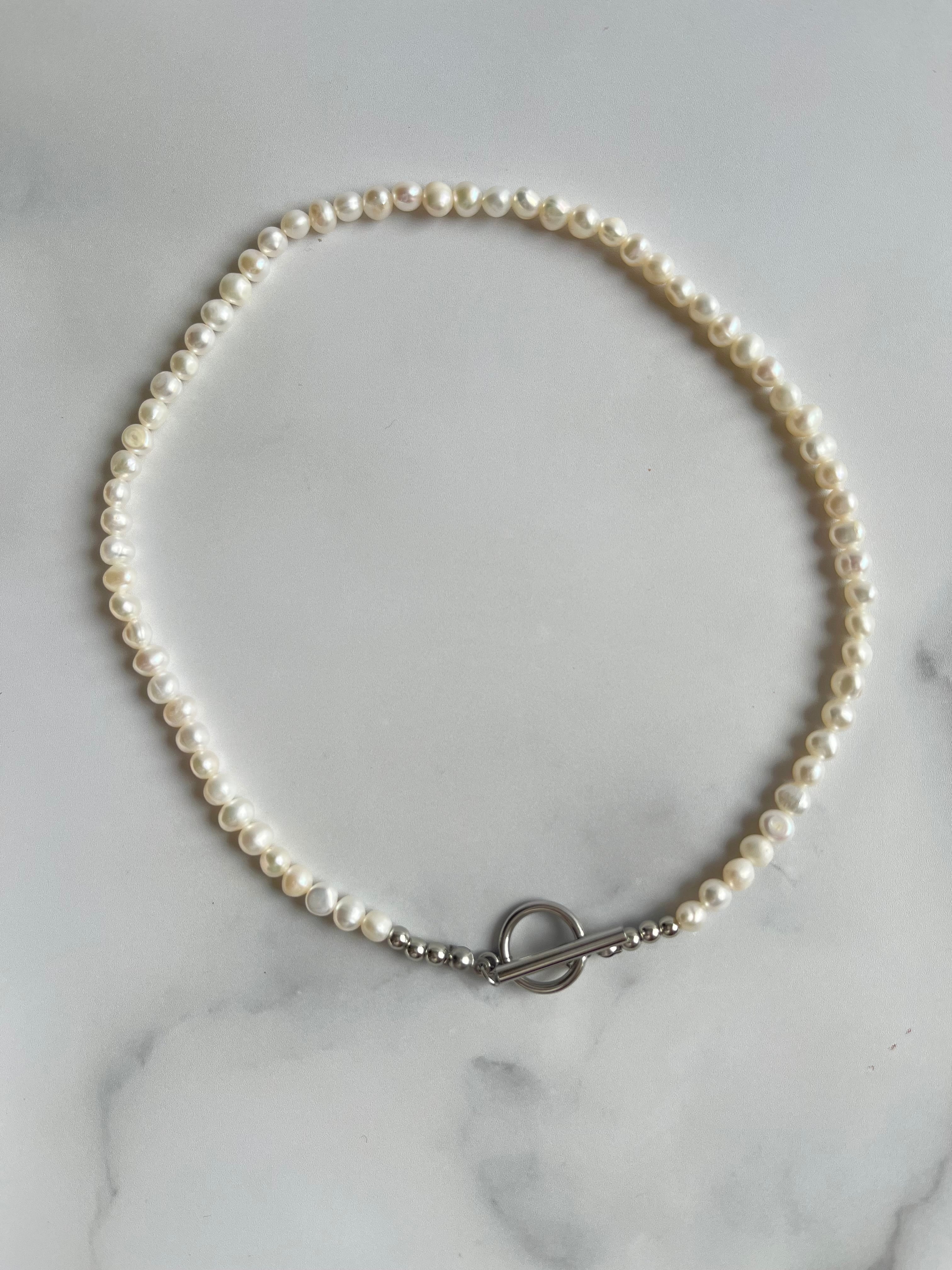 5〜6㎜の小さめポテト型のバロック淡水パールを使用したネックレスです。