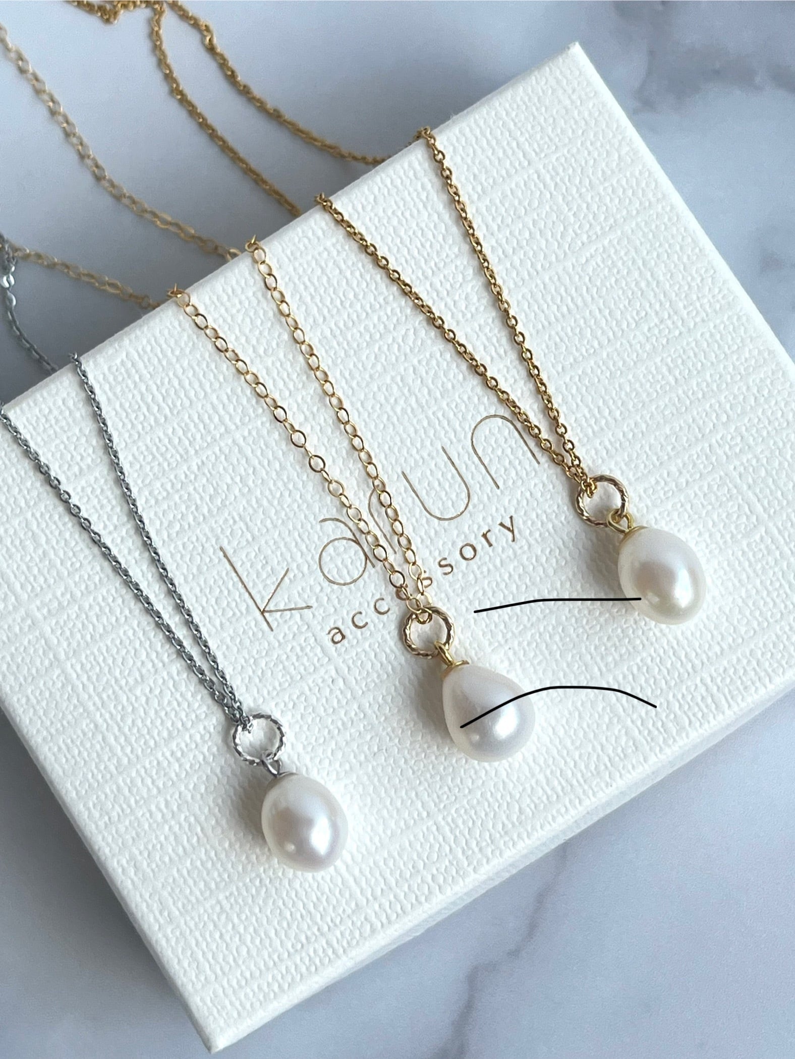 ドロップ型の淡水パール一粒のネックレスです。