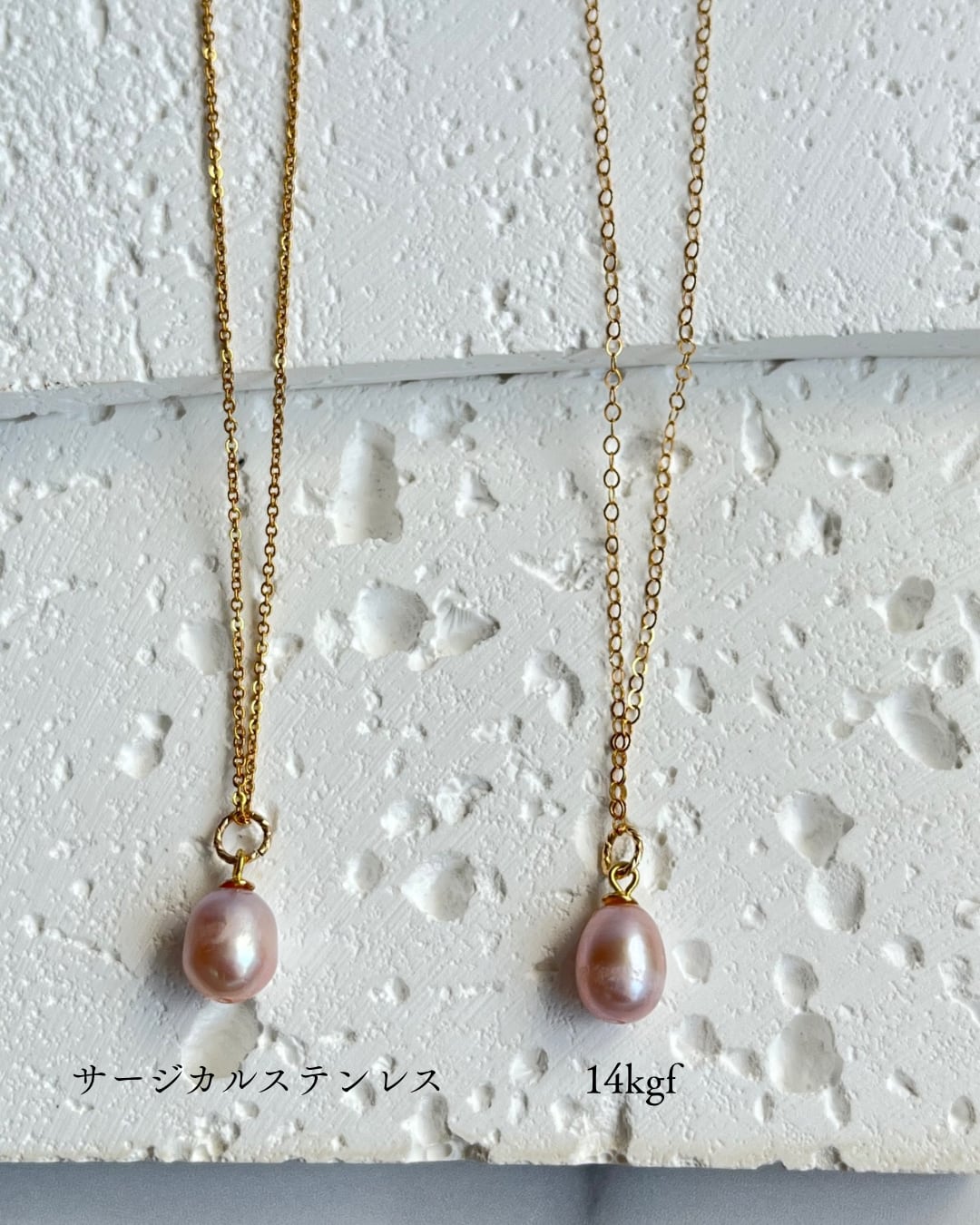 ネックレス 淡水パール 一粒 ピンク 14kgf サージカルステンレス N007