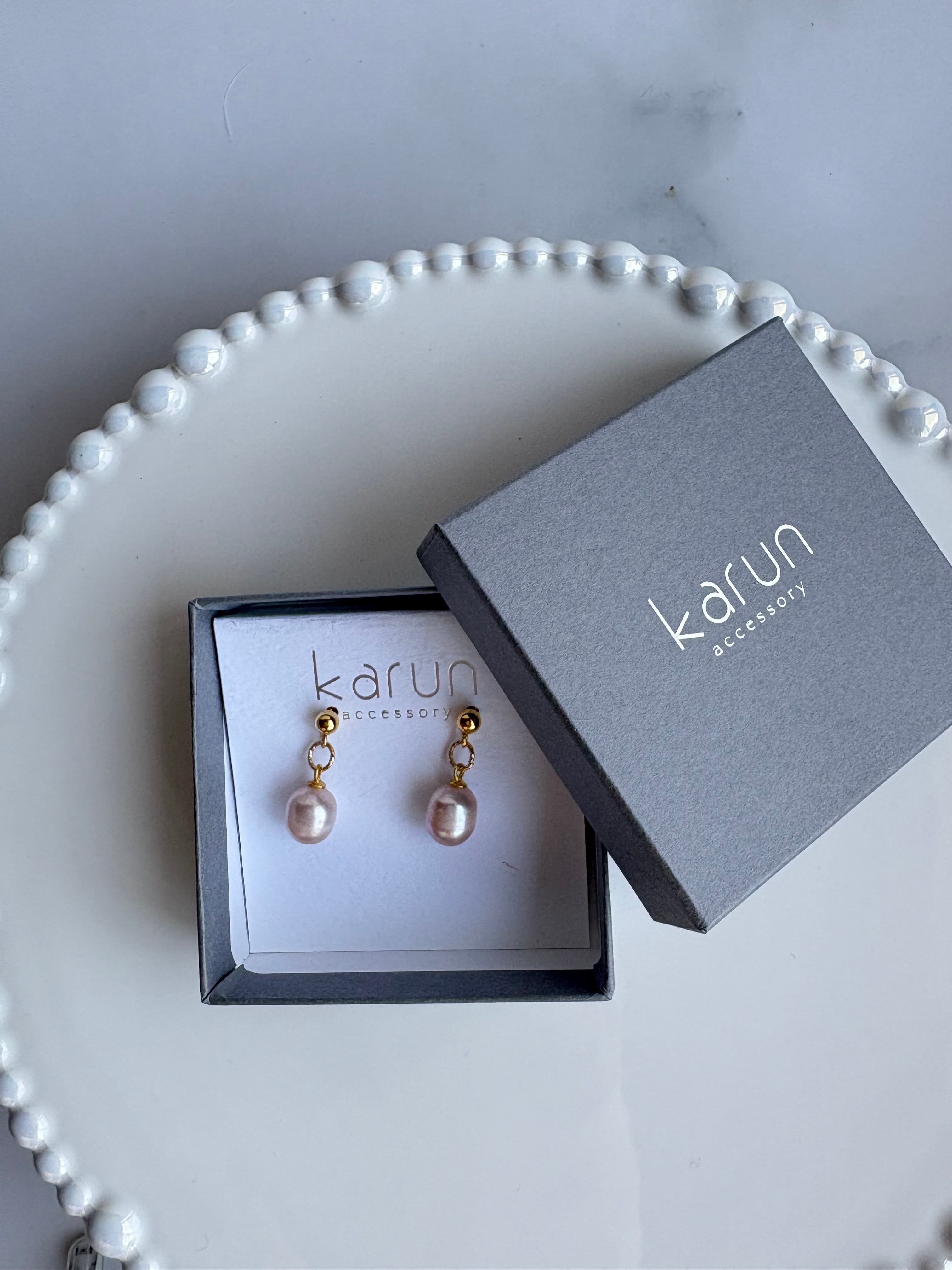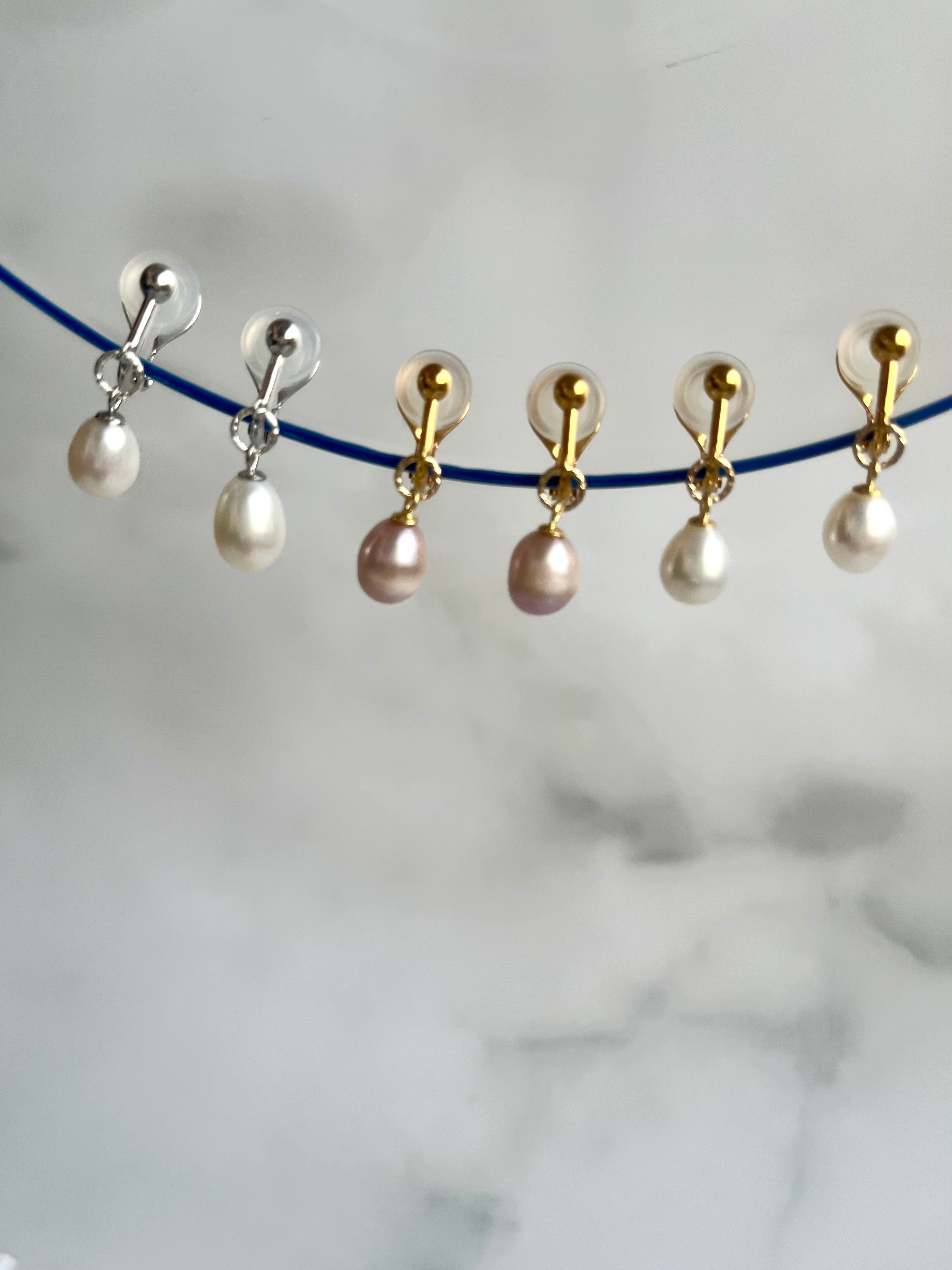 ドロップ型の淡水パール一粒のイヤーアクセサリーです。