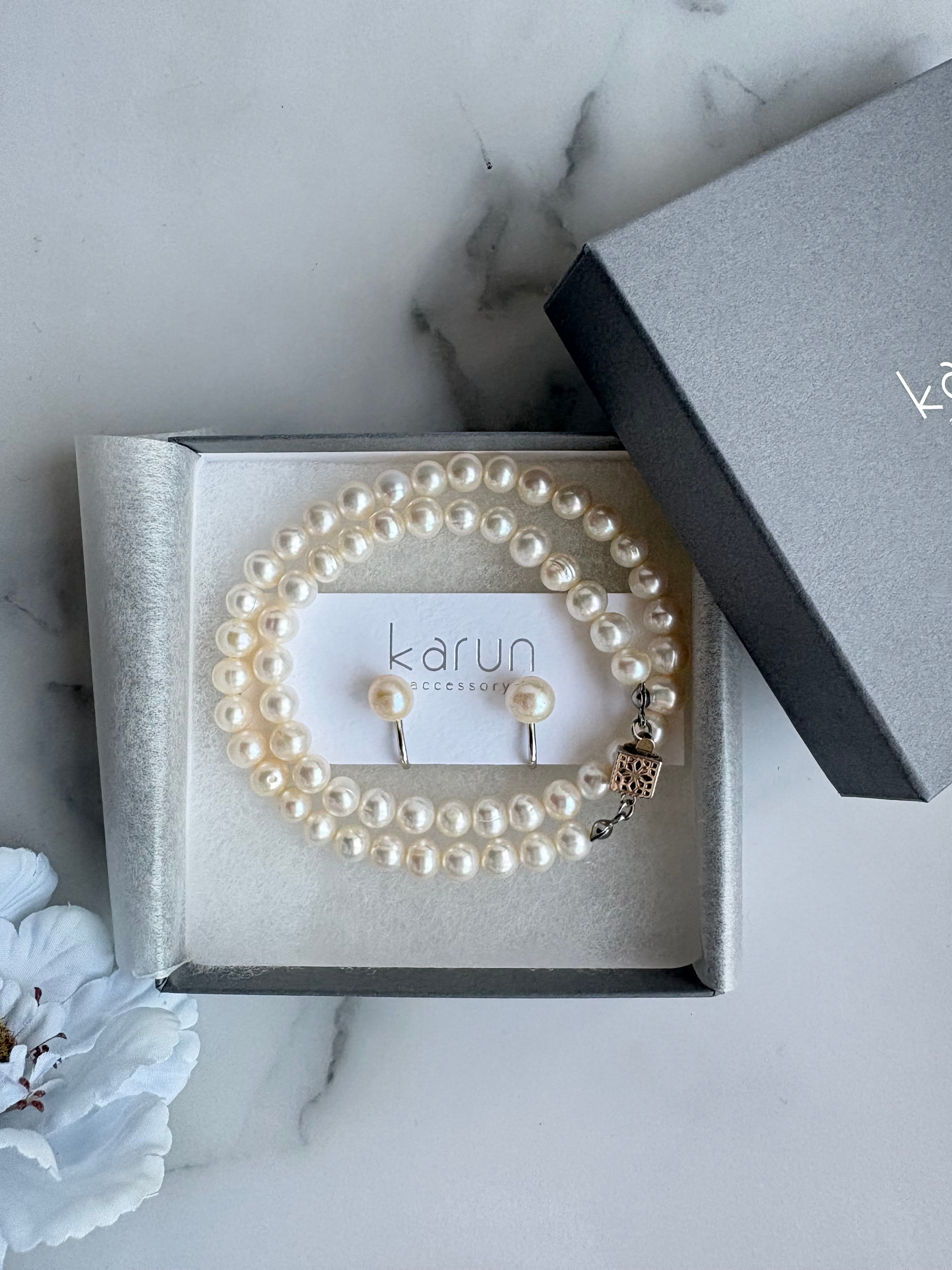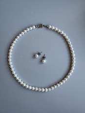 約8㎜の淡水パールを使用したフルネックレスとピアス/イヤリングのセットです。