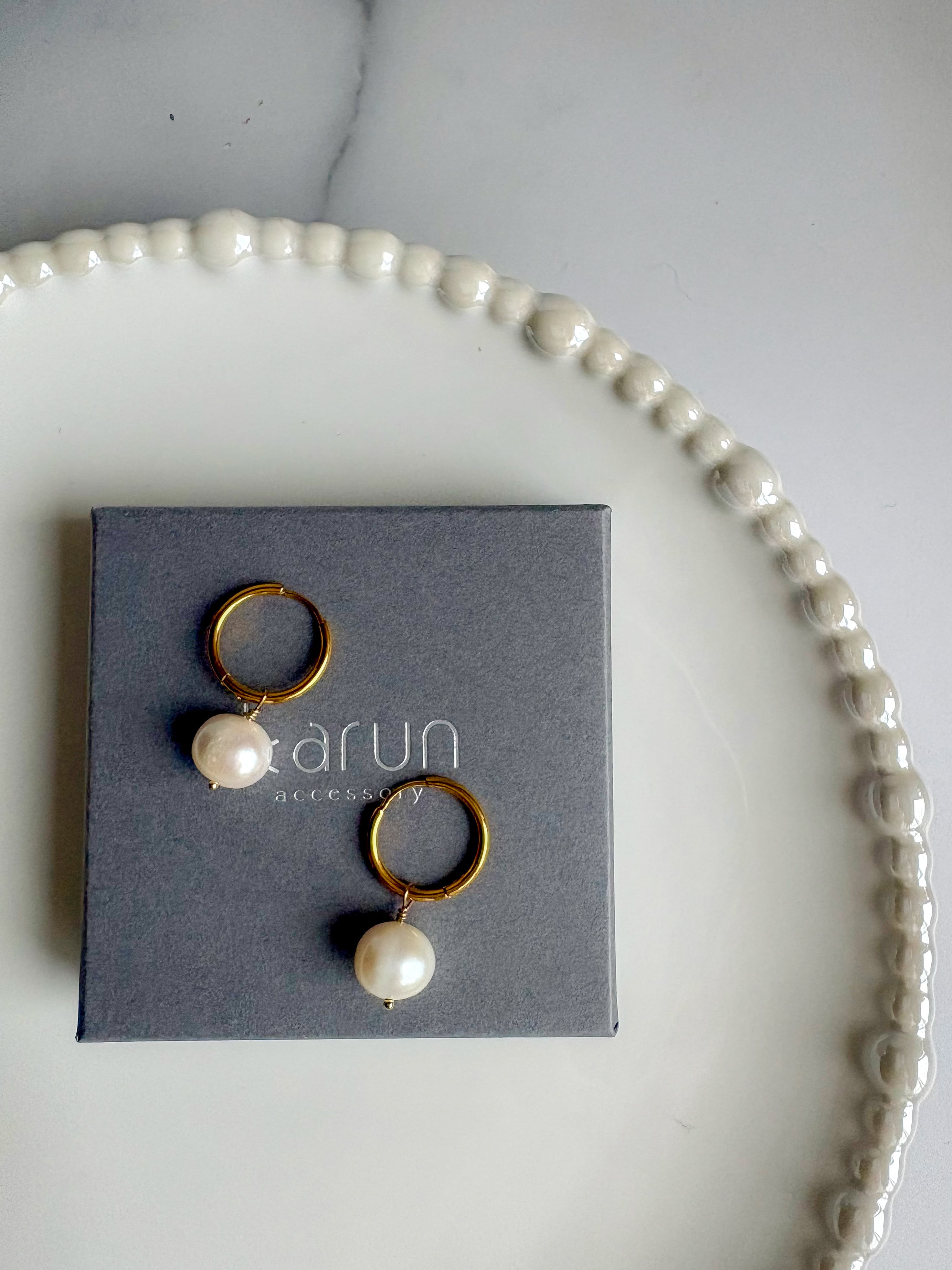 当店の片穴一粒パールと比べるとこちらは穴が貫通しており、形もまん丸ではなくセミラウンド〜ポテト型になり、お手頃価格でございます。