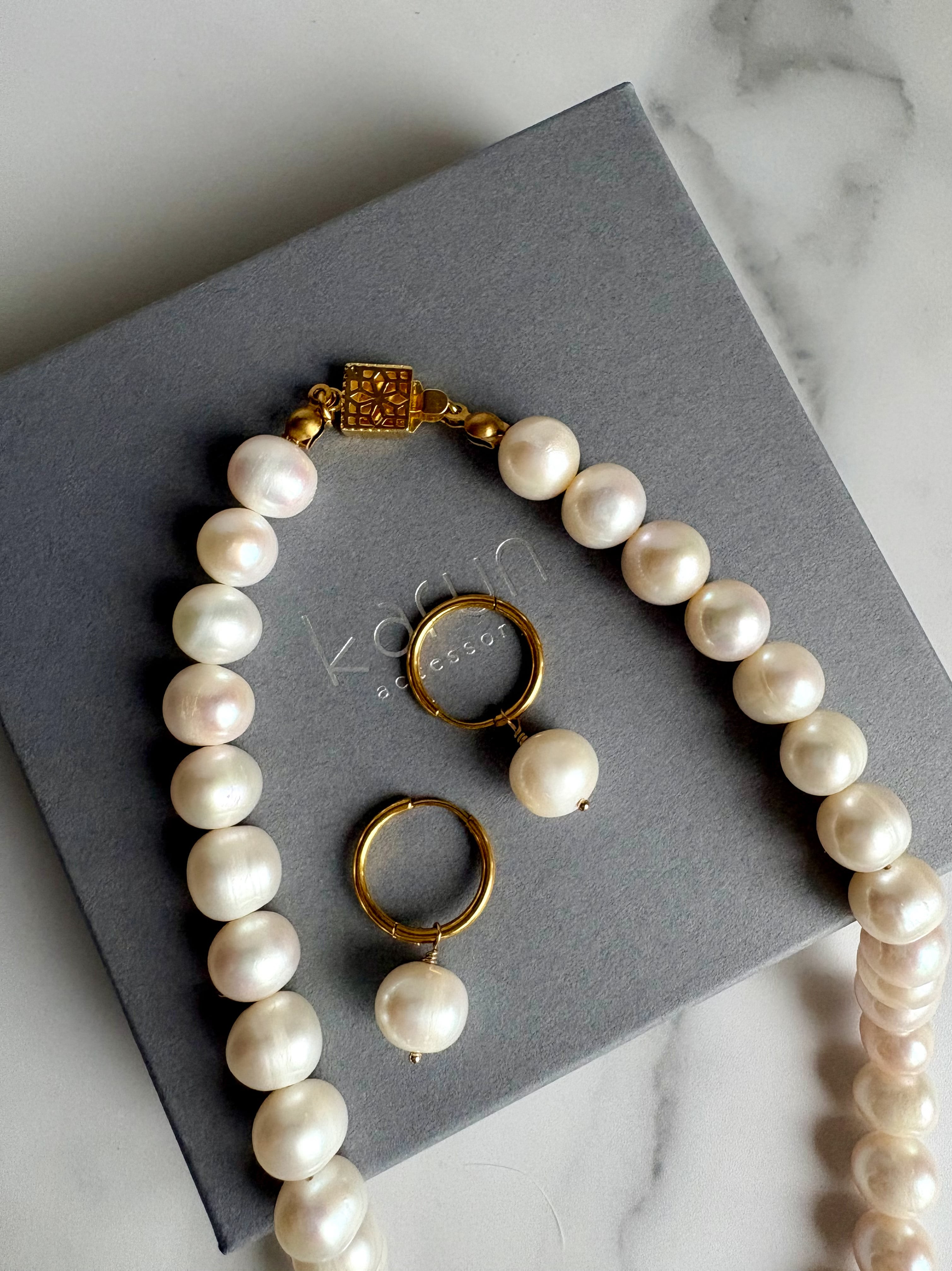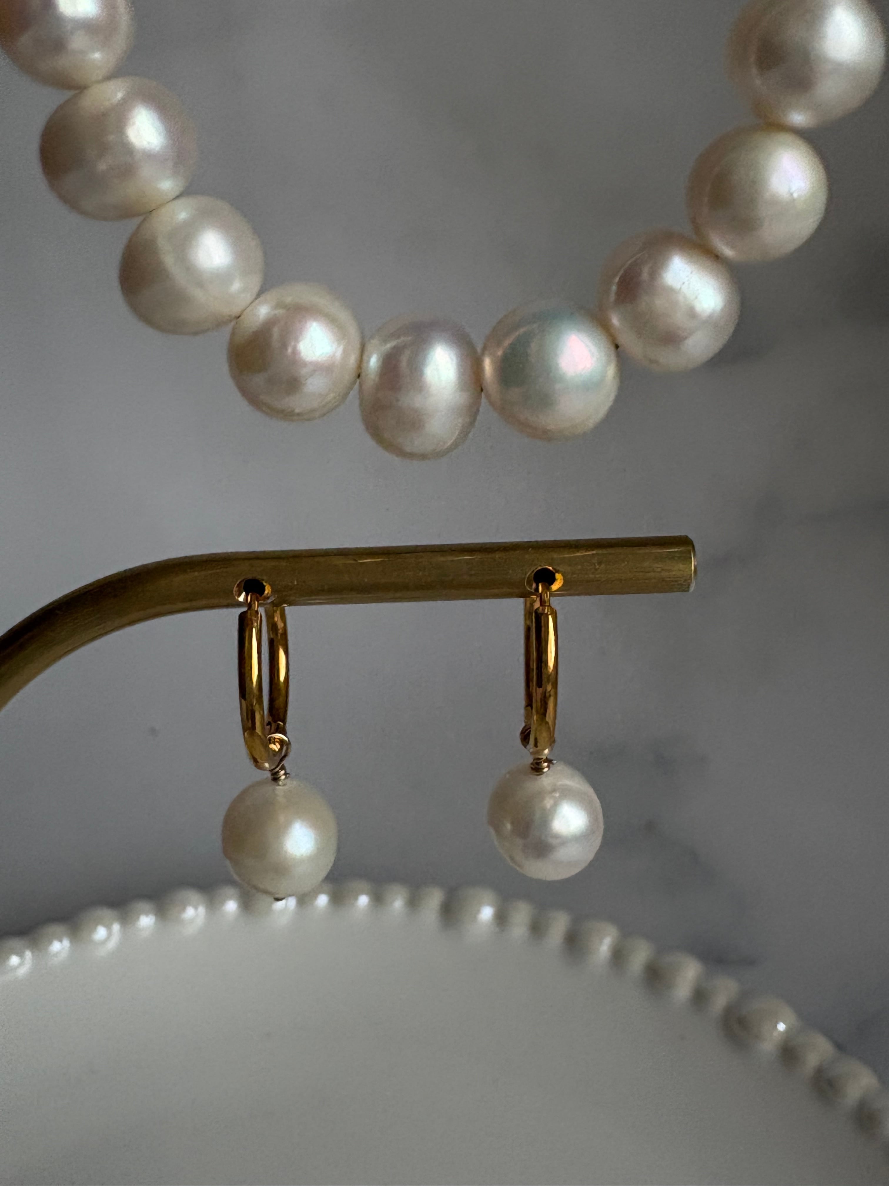 大粒淡水パール フルパールネックレスのパールと同じパールを使用したフープピアスと