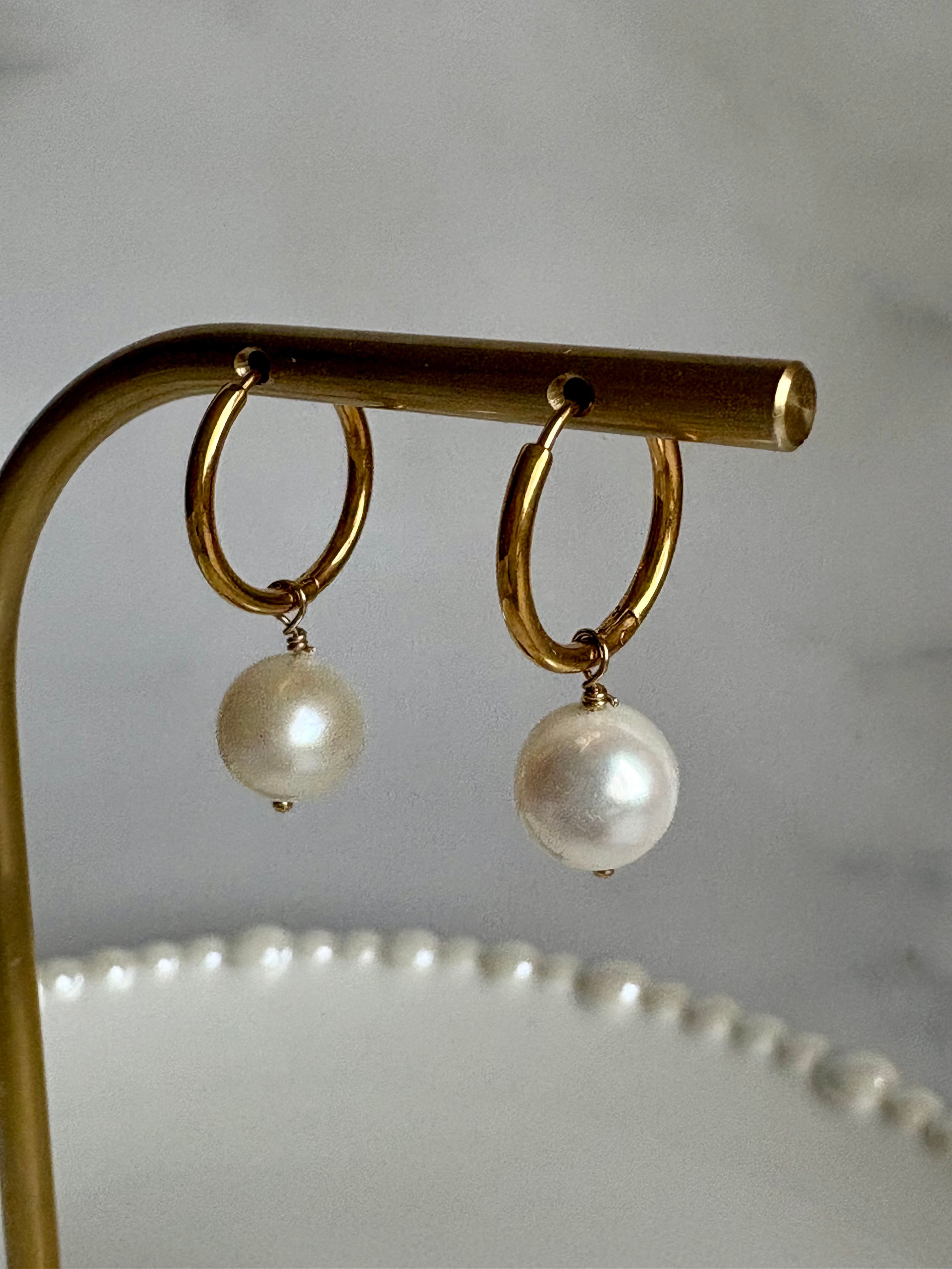 大粒淡水パール 一粒フープピアス フープイヤリング 痛くない 無痛
