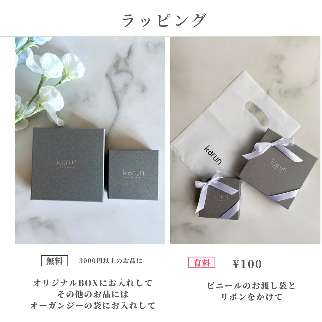ネックレスとピアスなど複数ご購入の場合はまとめてお箱にお入れする場合があります。別々のご希望やラッピング方法にご希望ありましたら備考欄に記入いただいたり、メッセージにて事前にお知らせください。