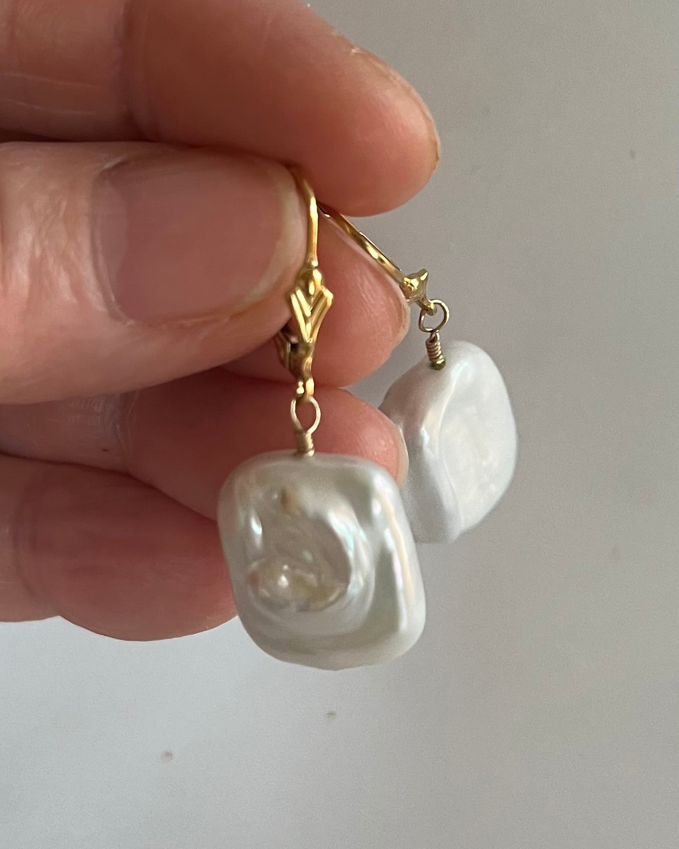 艶々の高品質の大粒の長方形バロック淡水パールです。
