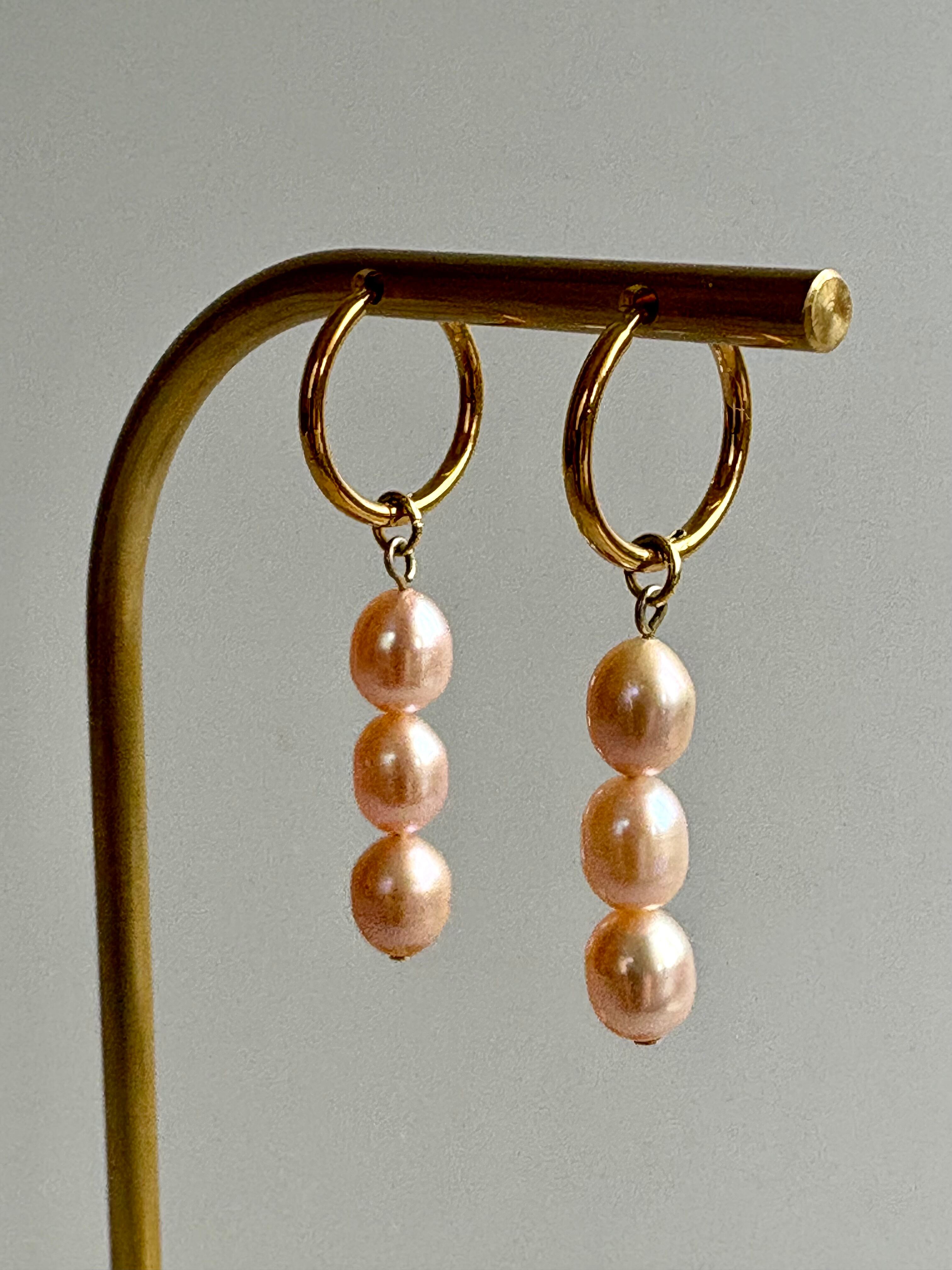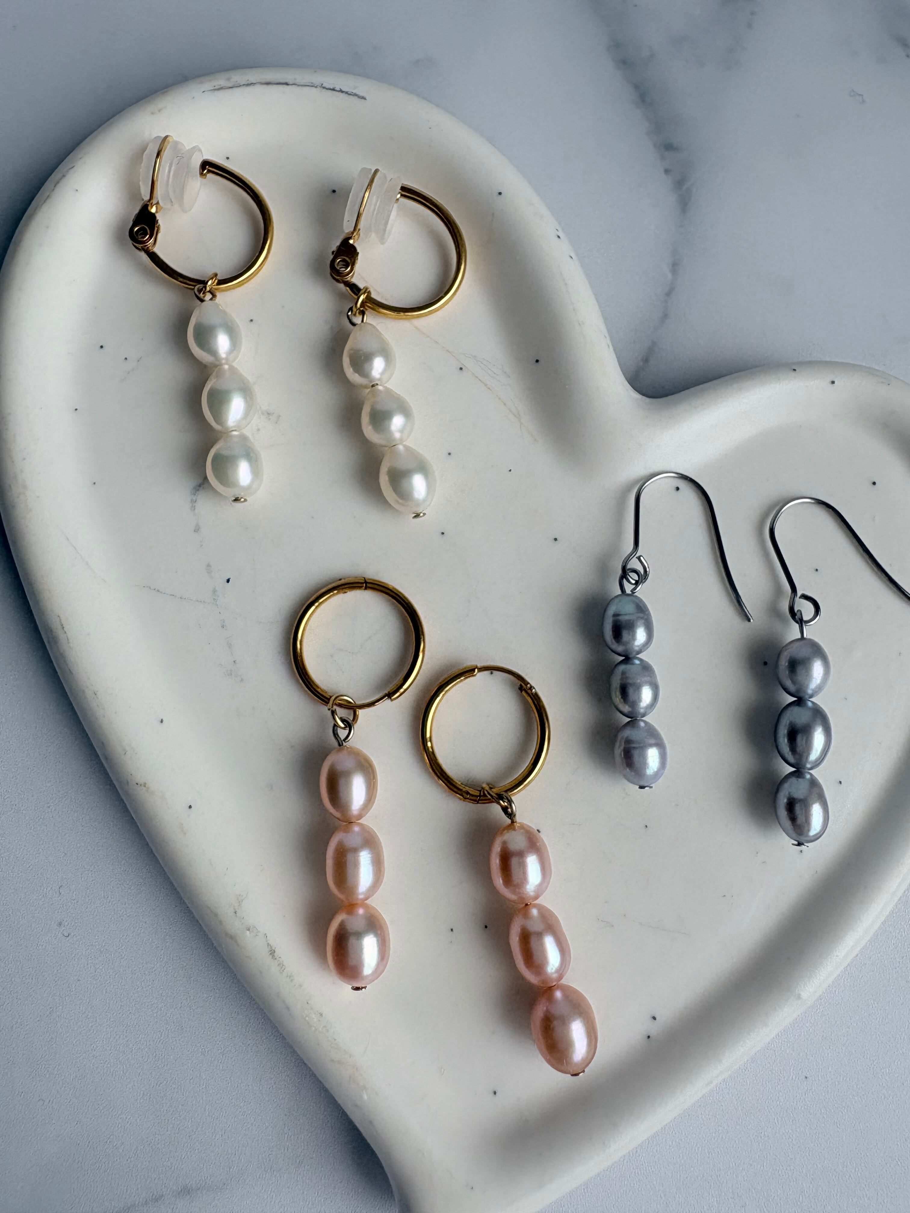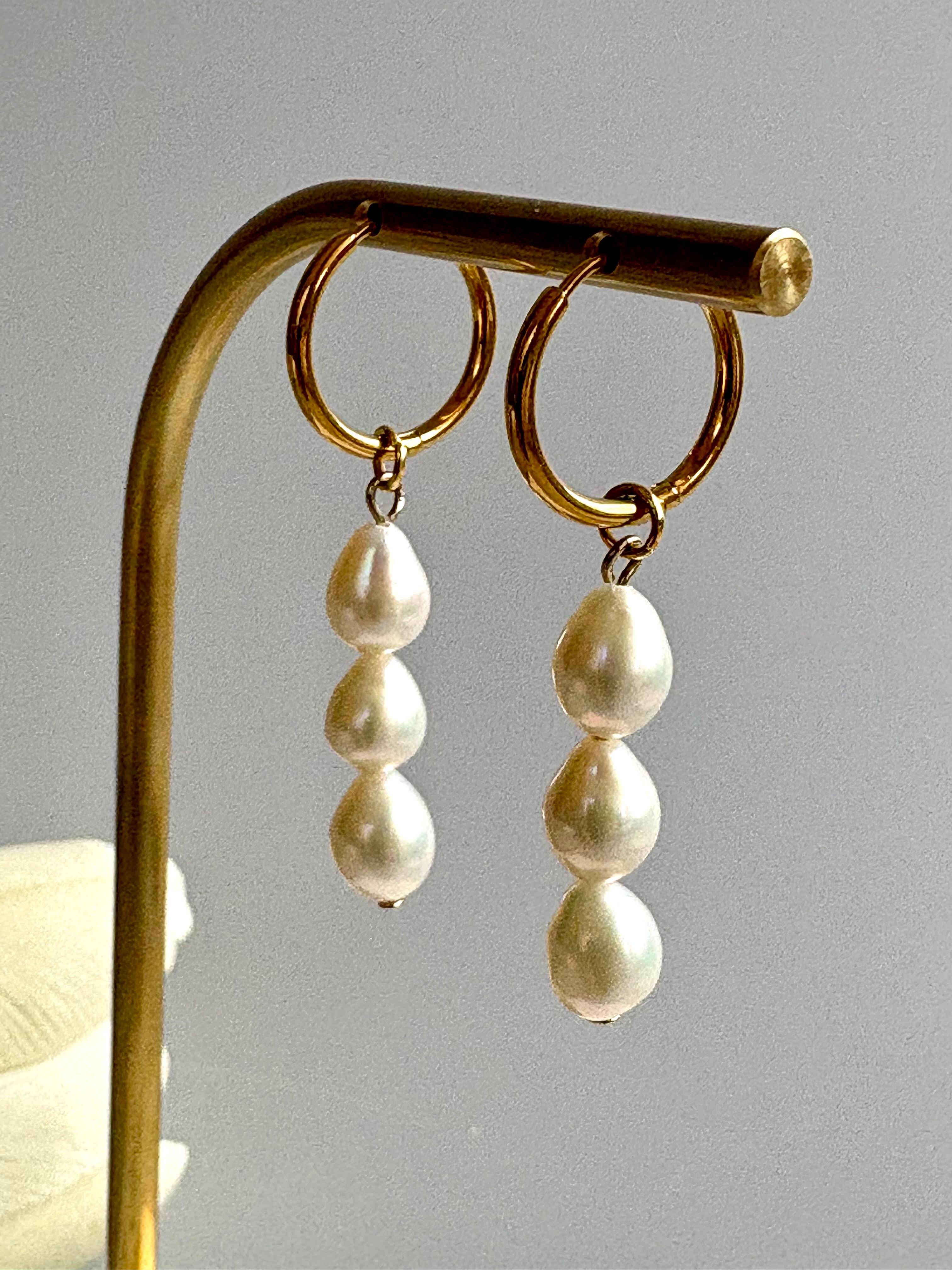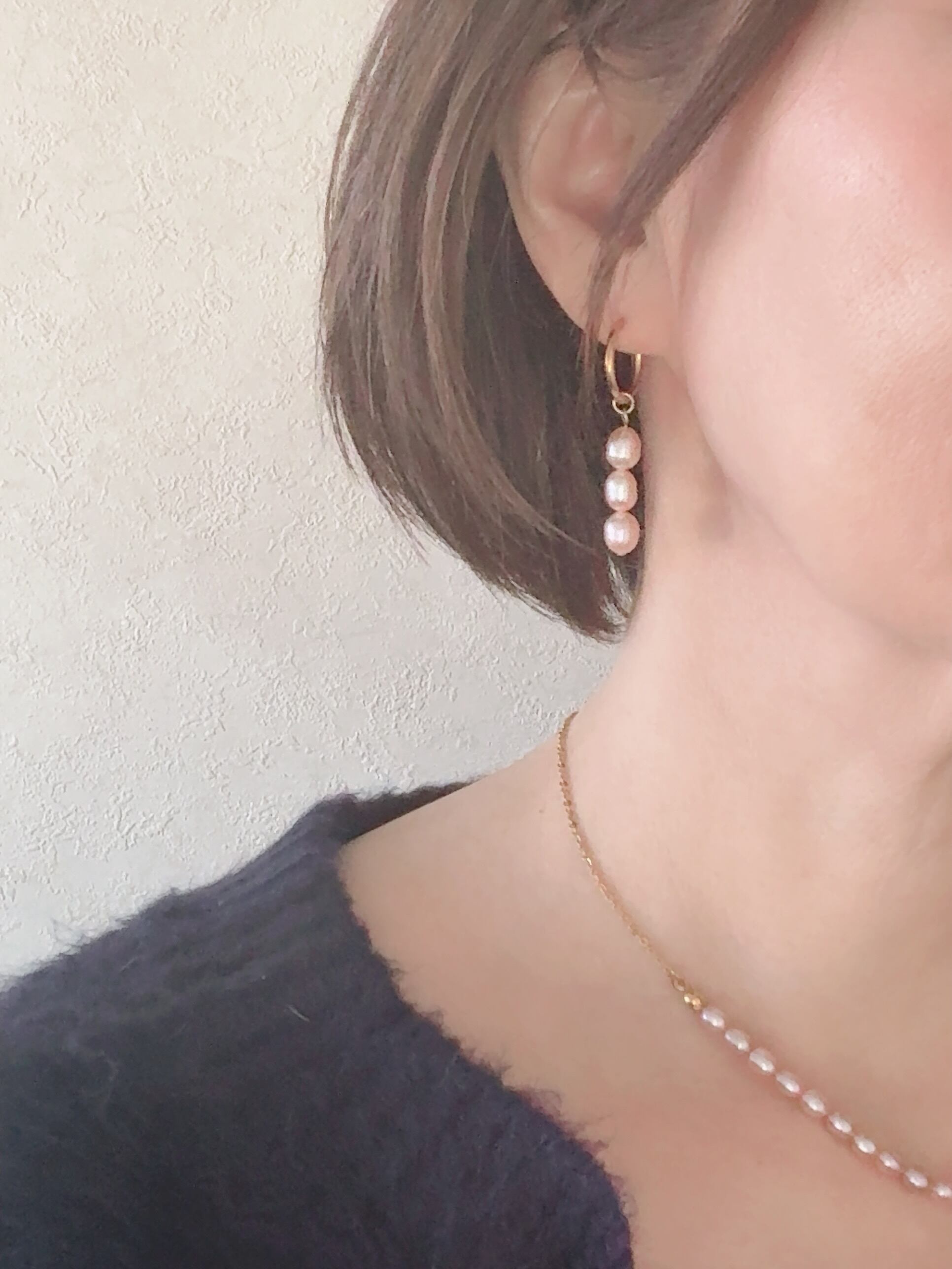 ライス型の淡水パールが縦に3つ並んだデザインです♡