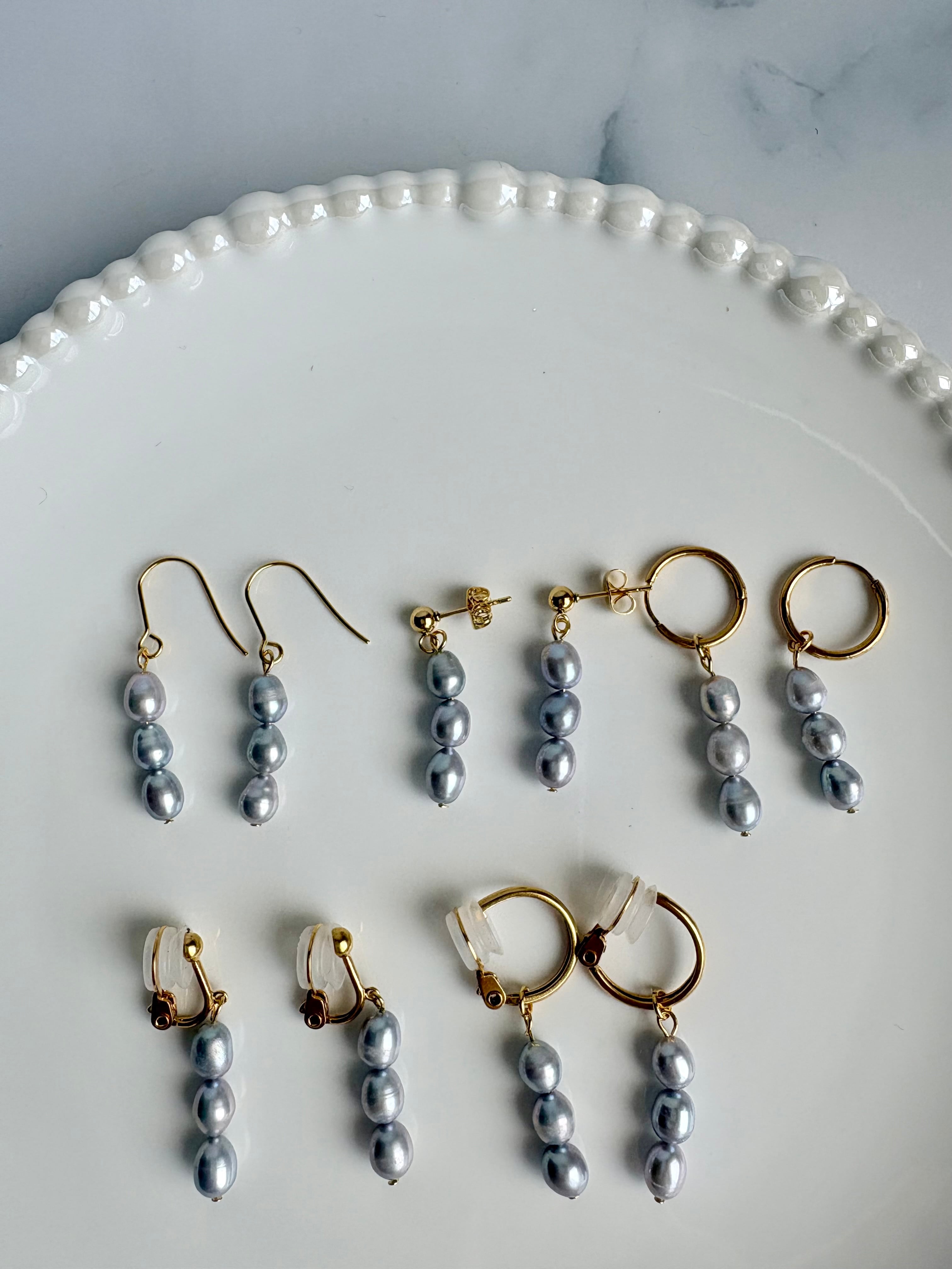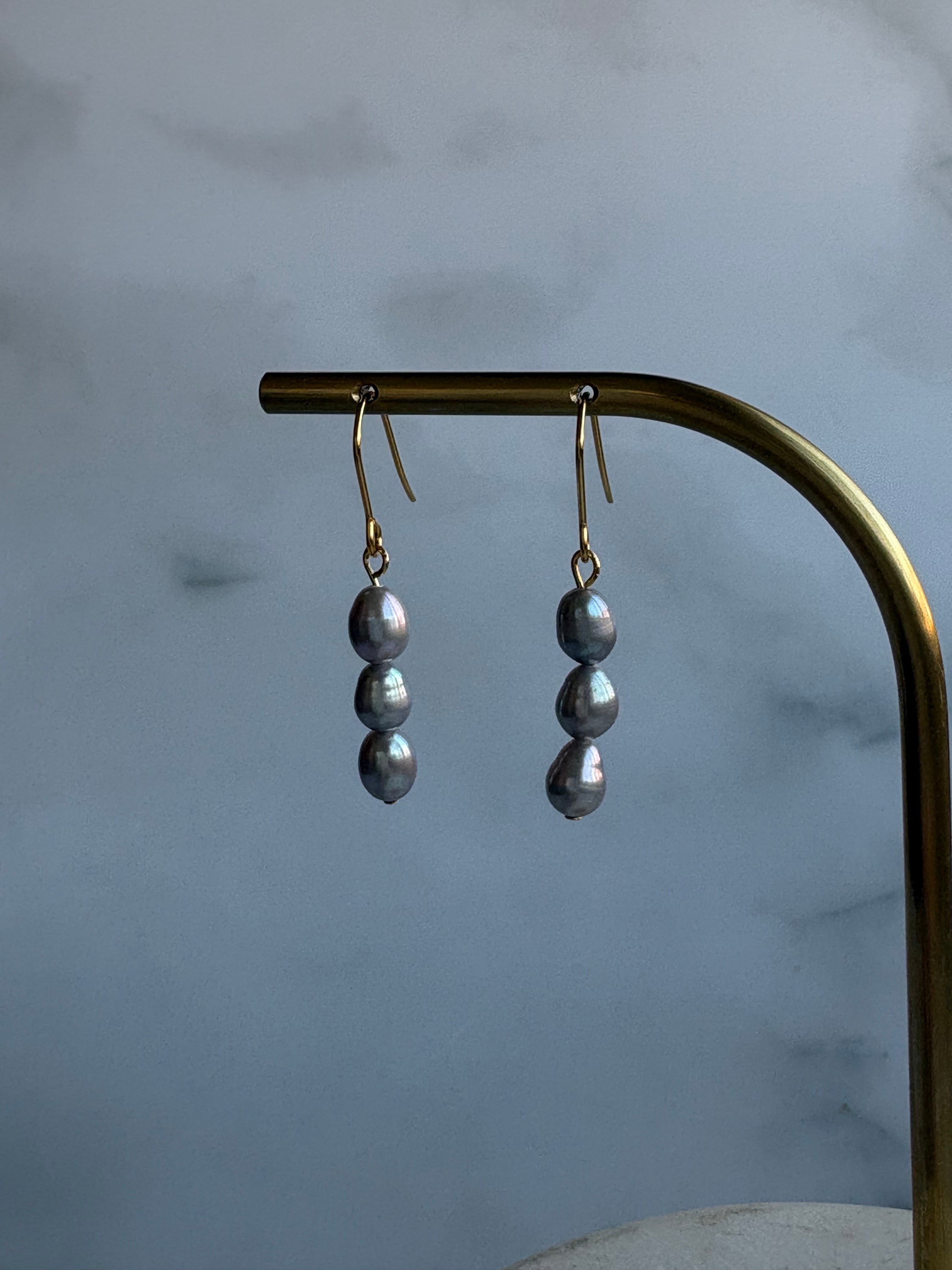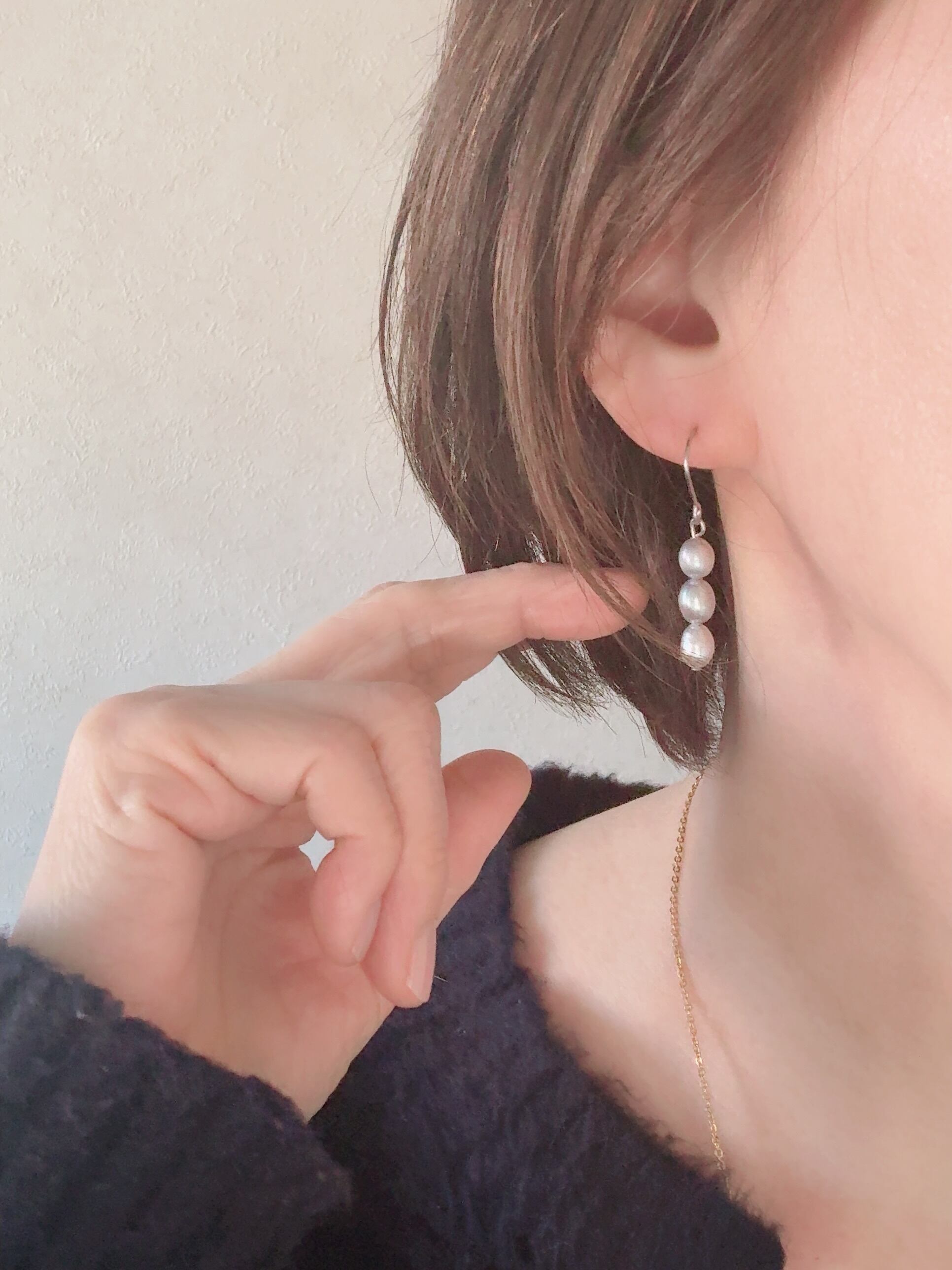 ライス型の淡水パールが縦に3つ並んだデザインです♡