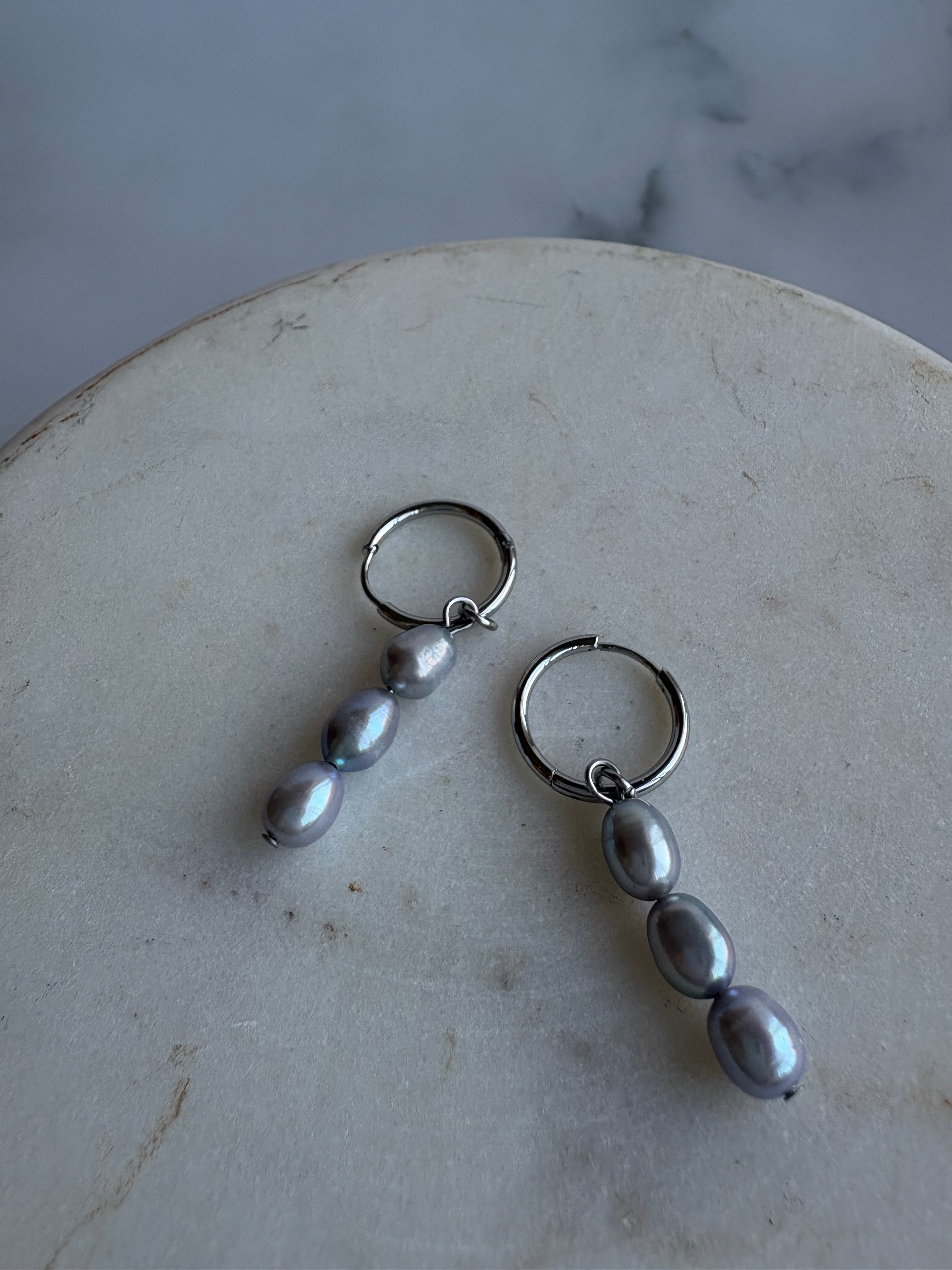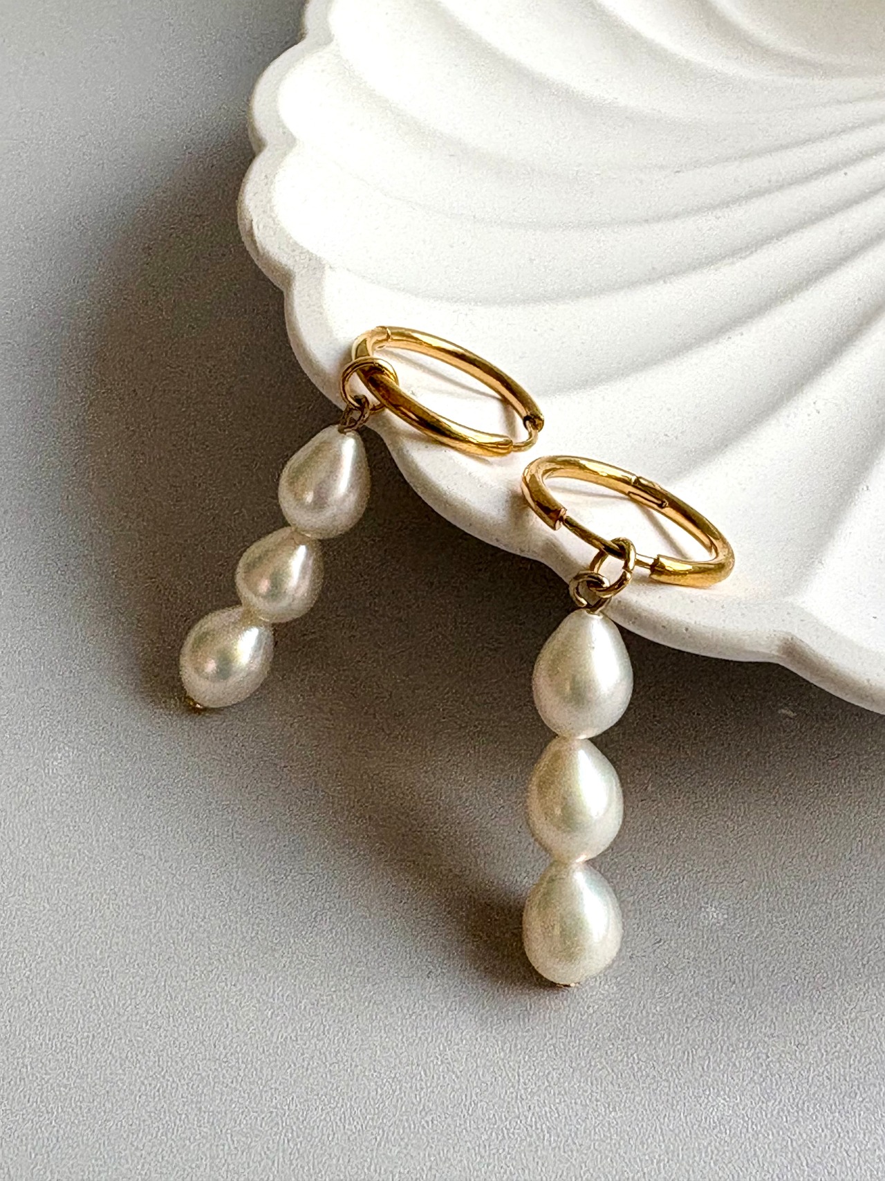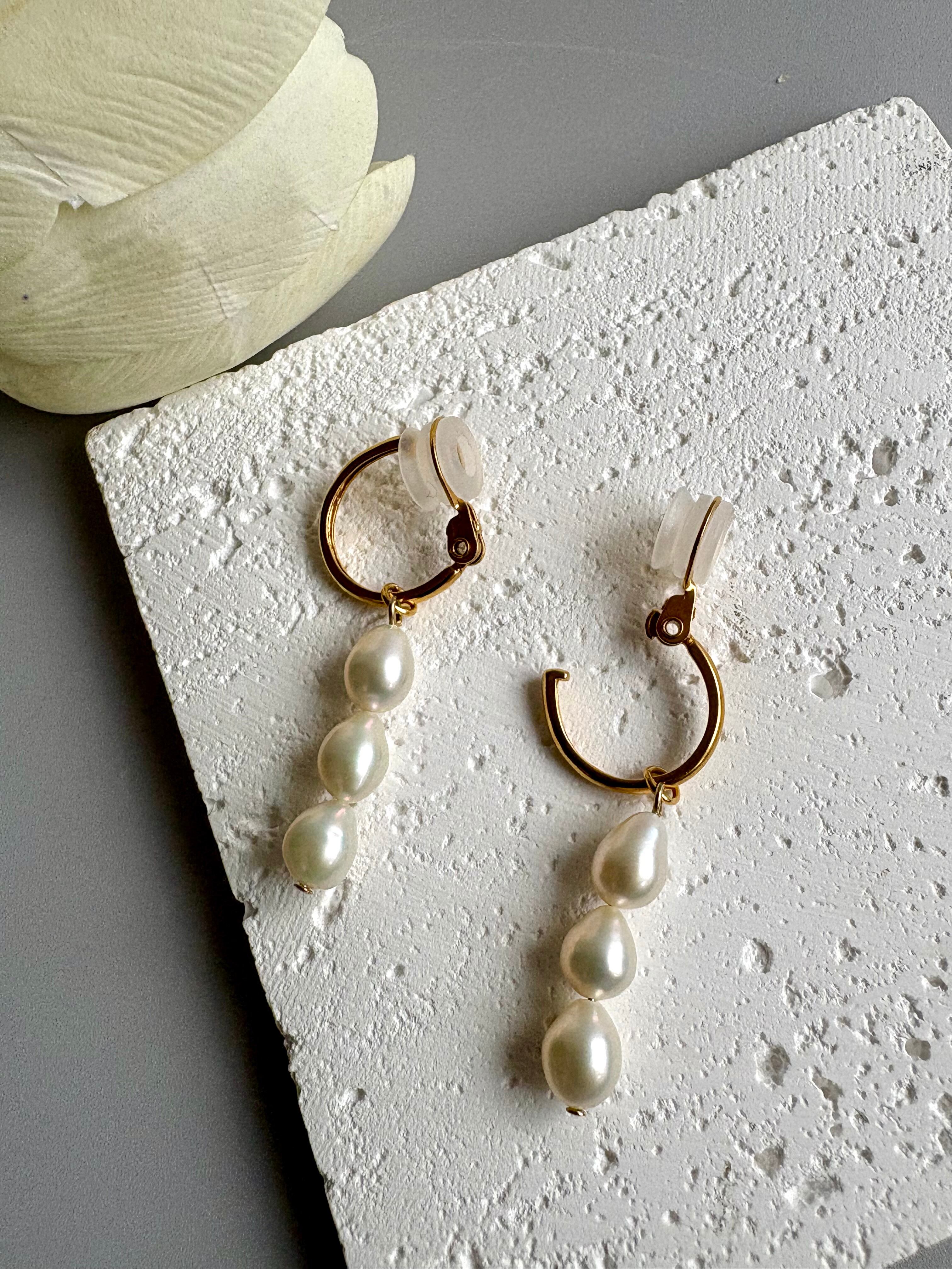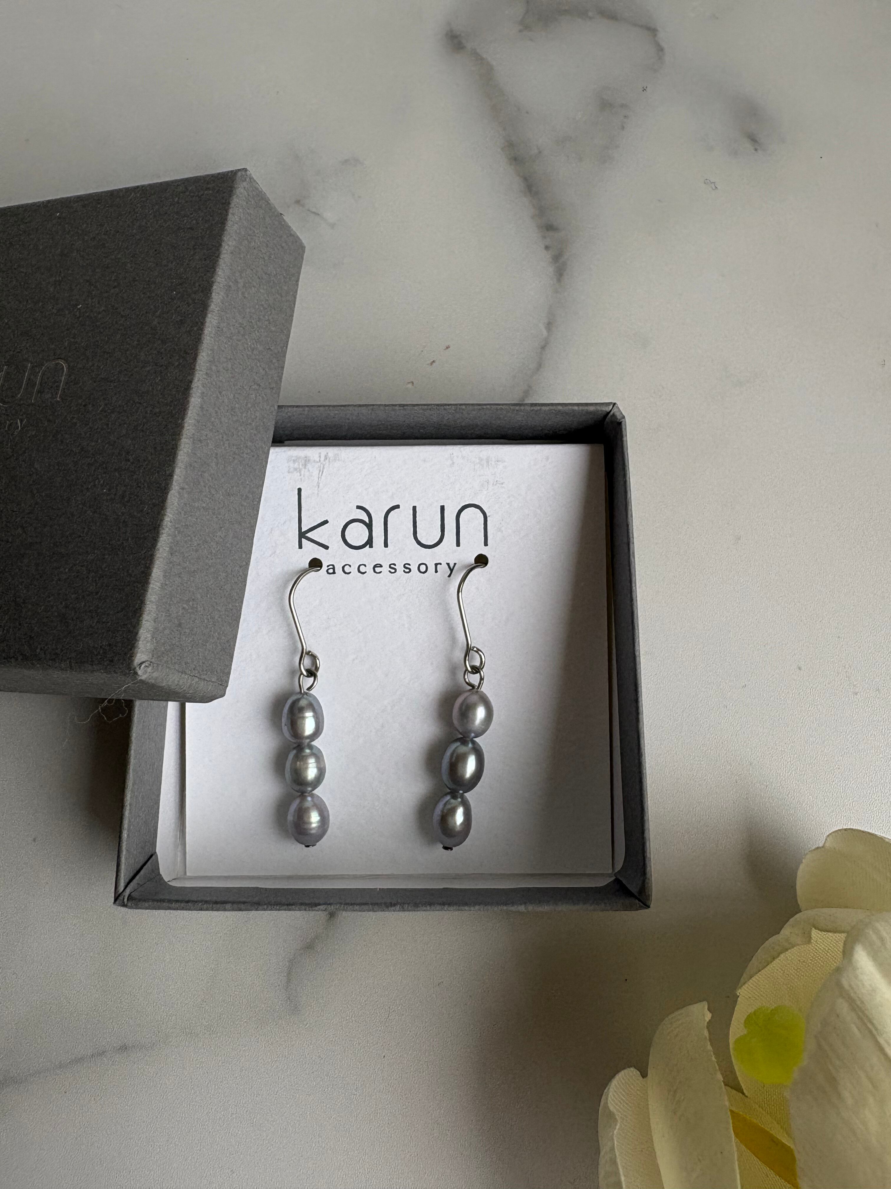 ライス型の淡水パールが縦に3つ並んだデザインです♡