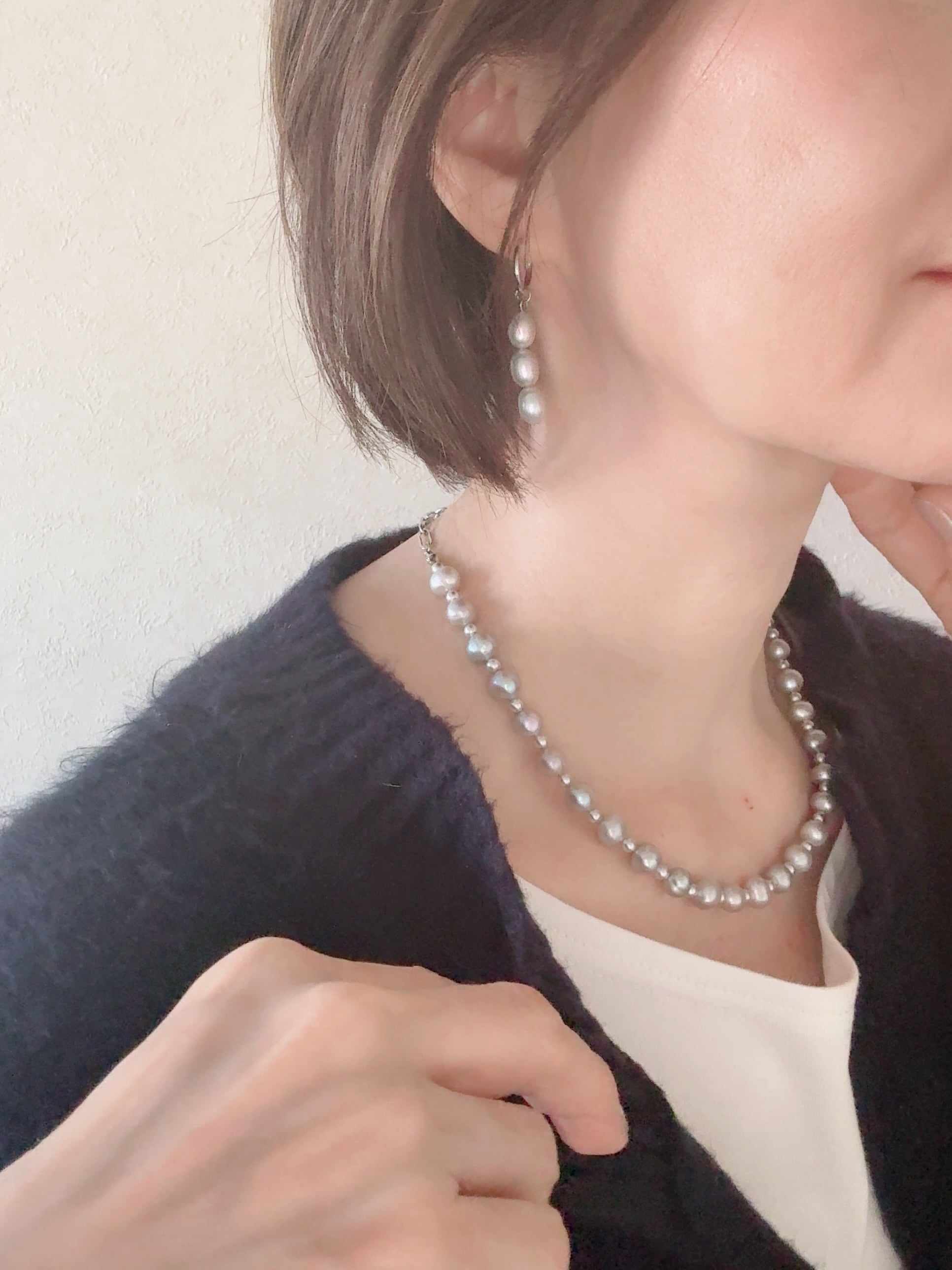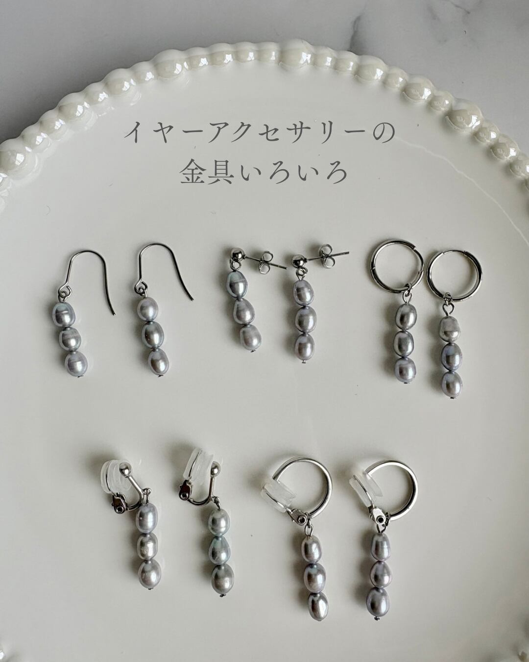 また少し縦長のライス型のパールが3個縦に並び、顔をほっそり見せる効果があります。