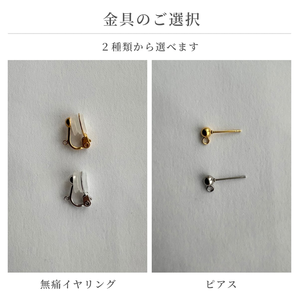 ピアスとソフトタッチ(無痛)イヤリングからお選びください